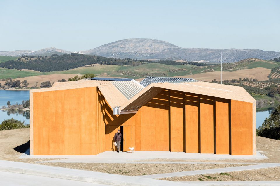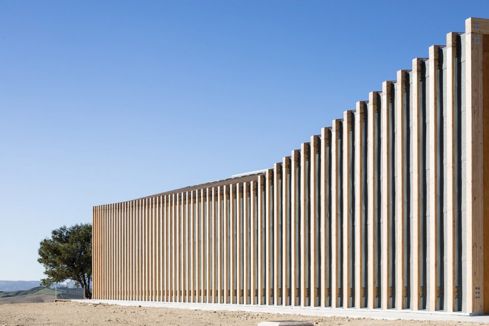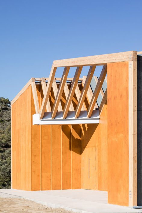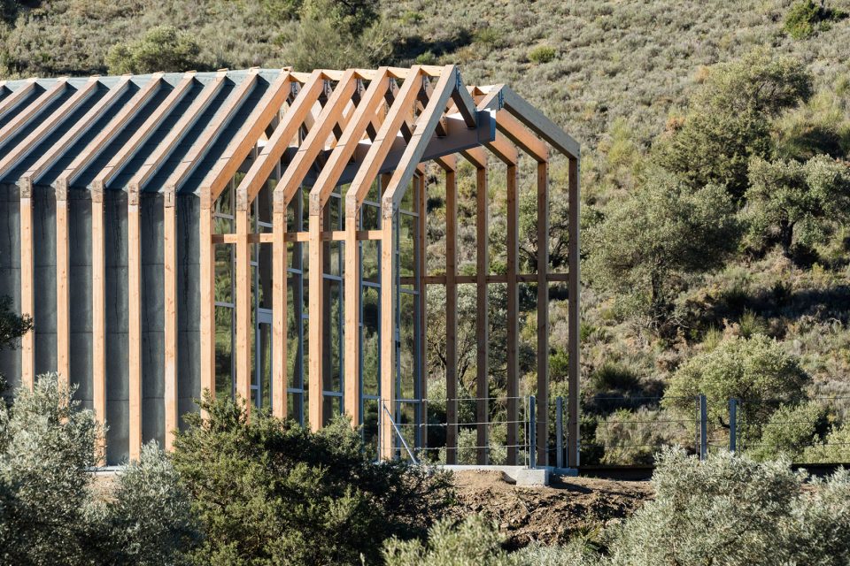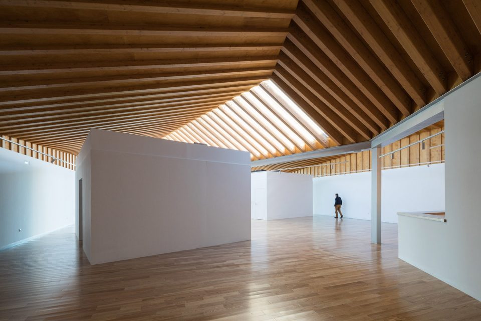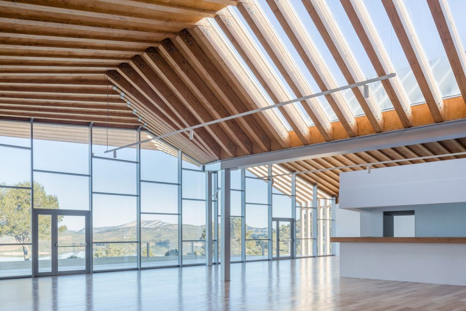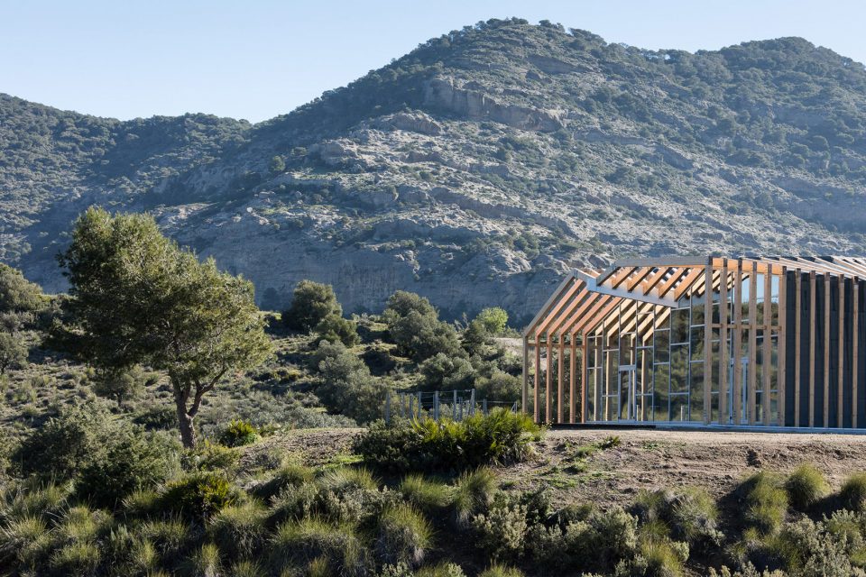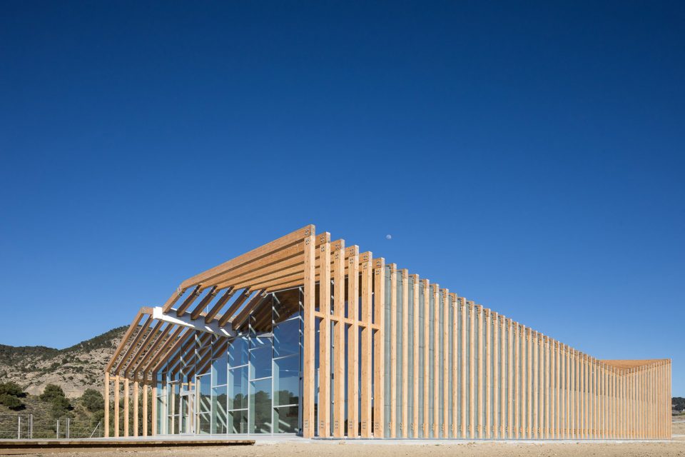 平行布置的木質(zhì)外框架形成了該建筑的主要特征,頂部的扭曲打破了嚴(yán)謹(jǐn)又富有秩序性的建筑外觀,創(chuàng)造了視覺的沖擊。外立面木結(jié)構(gòu)的夾縫間由木板加以防水涂層覆蓋,而末端縫隙則采用石板覆蓋。這種設(shè)計(jì)方式暗喻了峽谷的形成和對古道的解讀。建筑依靠光電板實(shí)現(xiàn)全部能源自給自足,并依靠Canadian well實(shí)現(xiàn)室內(nèi)通風(fēng)。