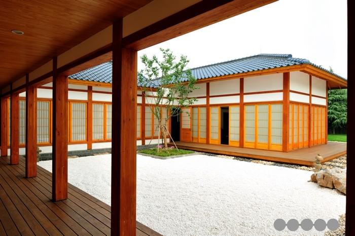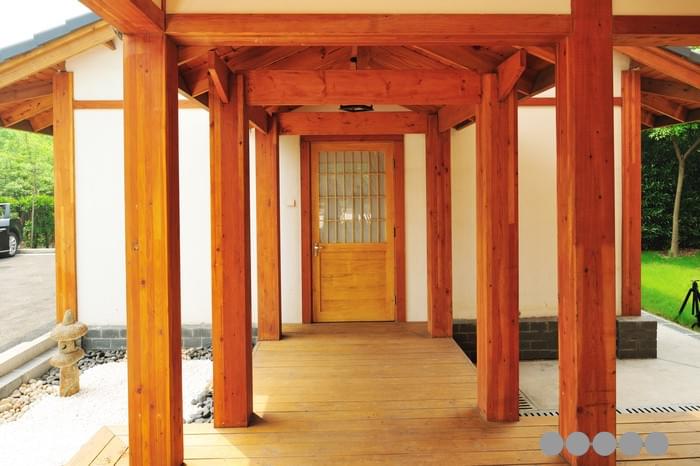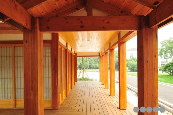 這是一座會(huì)所性建筑,一樓有接待門(mén)廳、保安室、會(huì)議室、會(huì)客大廳、酒吧視聽(tīng)室、棋牌室、獨(dú)立車庫(kù)等。本案設(shè)計(jì)建造者十分感慨的一點(diǎn)是,日本建筑業(yè)在堅(jiān)持傳統(tǒng)的基礎(chǔ)上大量吸引現(xiàn)代歐美的木建筑概念,包括結(jié)構(gòu)和節(jié)點(diǎn)方式,新的材料工業(yè)進(jìn)步以及建筑的節(jié)能保溫方法等,使得傳統(tǒng)的日式建筑得以在充實(shí)革新后,不斷發(fā)展,仍然可以滿足今天人們的生活居住要求。從中可以給眾多致力于繼承和發(fā)揚(yáng)中國(guó)自身建筑傳統(tǒng)的專業(yè)人士啟示。