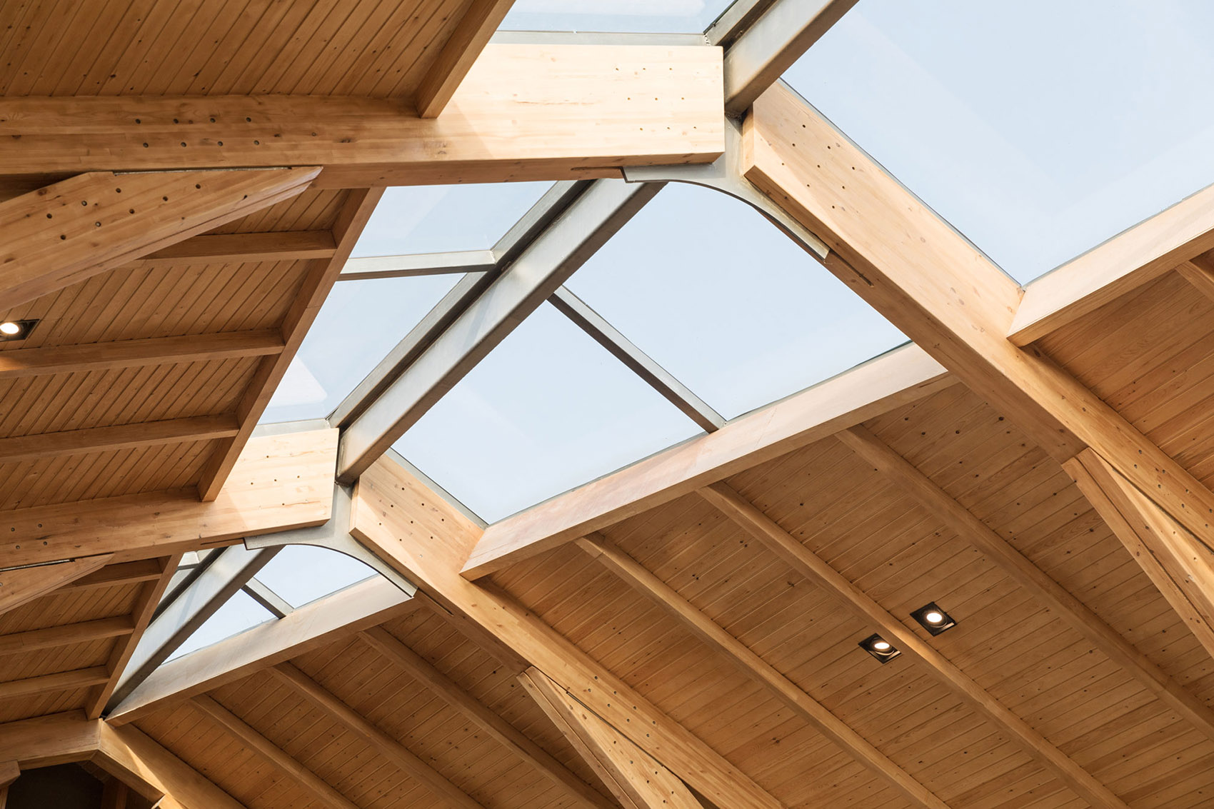 膠合木作為常用的木結(jié)構(gòu)建筑用材,可制作成大跨度彎曲梁,廣泛用于體育館、大型公共會(huì)所的制造。大型公共建筑為何如此偏愛(ài)膠合木?