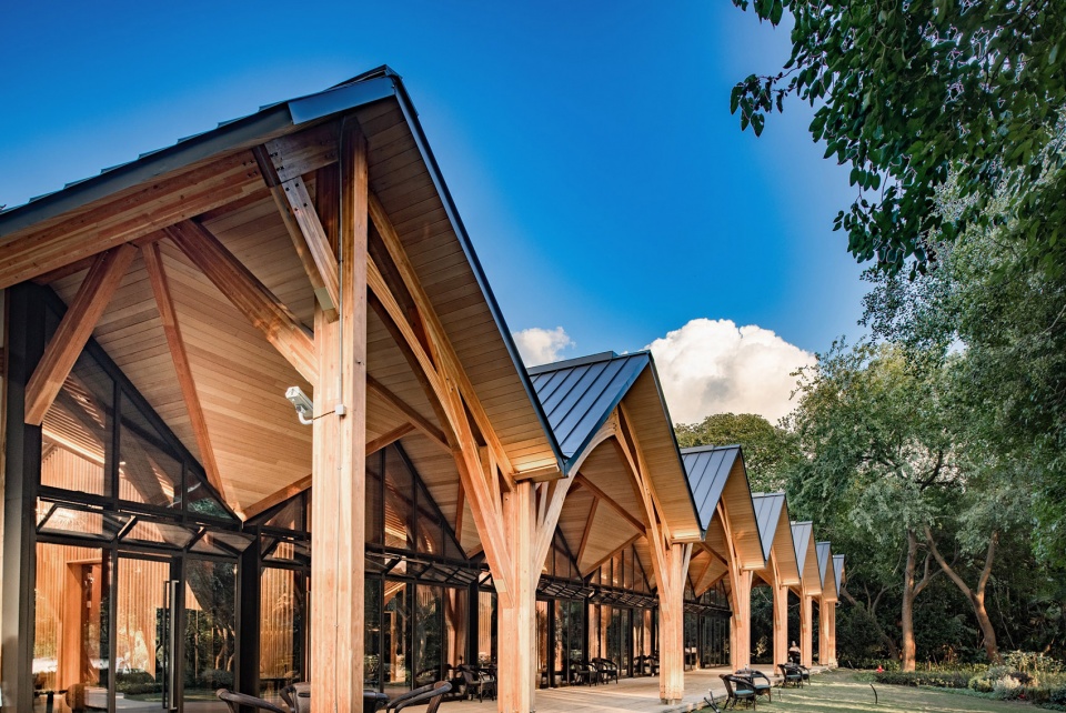 重型木屋是指采用工程木產(chǎn)品以及方木或者原木作為承重構(gòu)件的大跨度梁柱結(jié)構(gòu)。重型木結(jié)構(gòu)因為其外露的木材特性,能充分體現(xiàn)木材的天然的色澤和美麗的花紋,被廣泛用于一些有高尚、環(huán)保追求的建筑中。重型木結(jié)構(gòu)優(yōu)勢 : 木結(jié)構(gòu)建筑在近幾個世紀以來一直在北美、歐洲以及亞洲地區(qū)(韓國,日本,臺灣,中東地區(qū))得到了廣泛的應(yīng)用,并仍將是21世紀的主導建筑體系,其原因在于木結(jié)構(gòu)建筑具備以下獨特的優(yōu)勢: (1)節(jié)能保溫 (2)美觀舒適、溫暖宜人 (3)環(huán)保建材:天然,健康,可更新 (4)經(jīng)久耐用 (5)抗震防火 (6)隔音效果佳.缺點:材料用量大,費用相對要高一些。