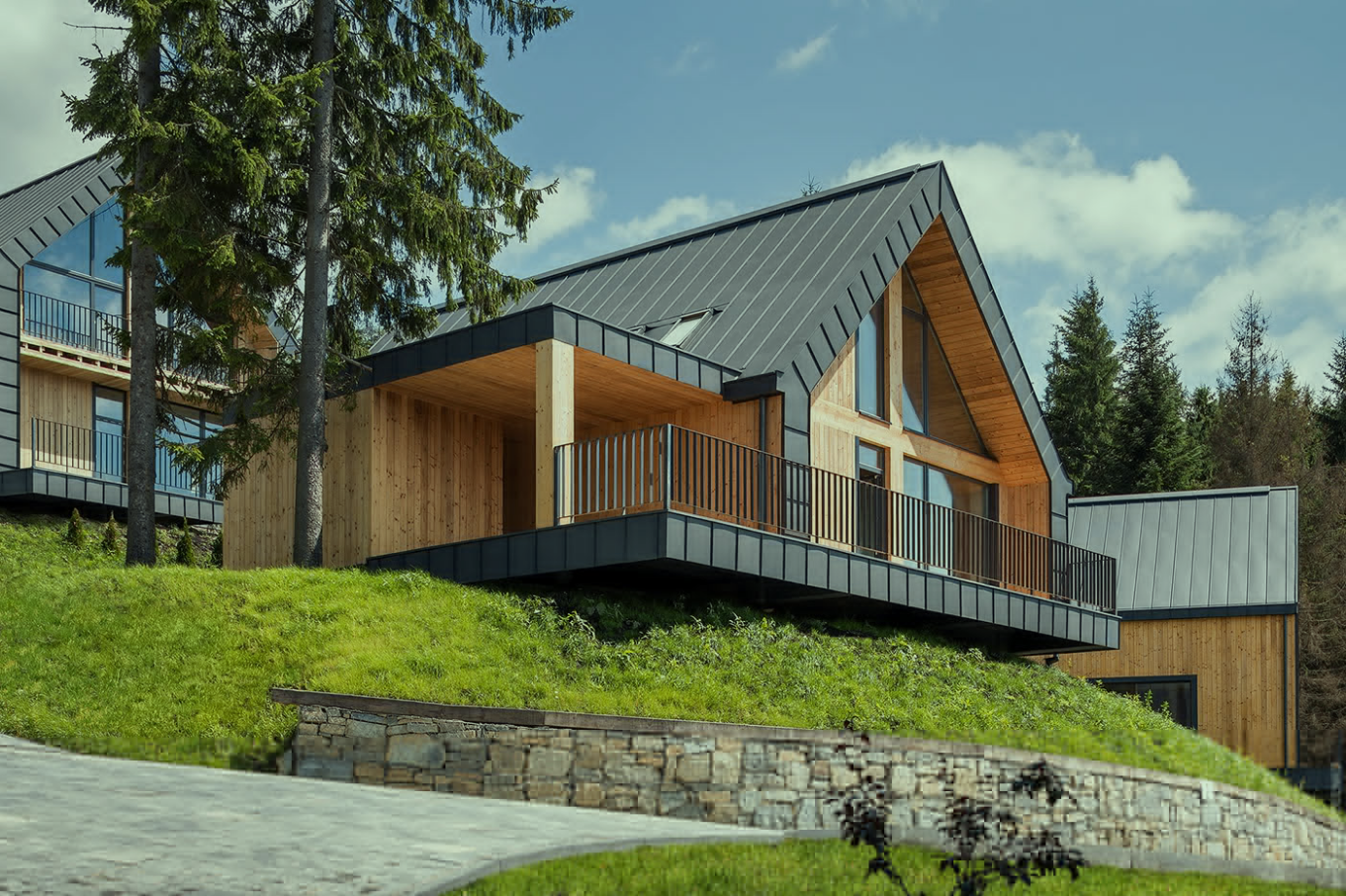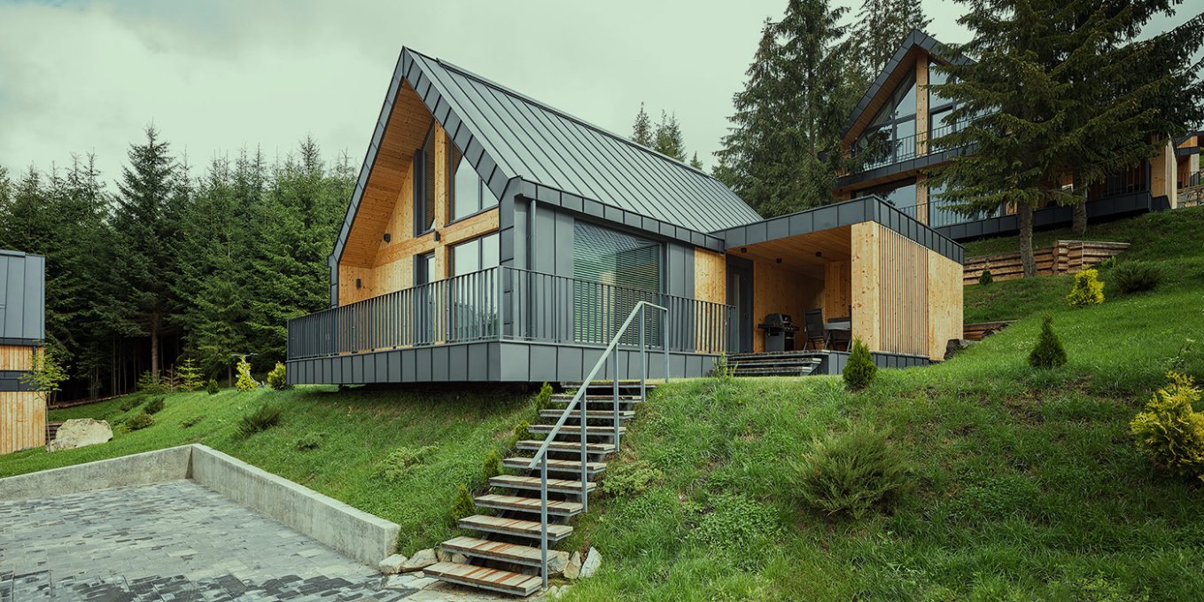 大面積窗戶:在木屋的設(shè)計(jì)中,采用大面積的窗戶設(shè)計(jì),將周圍的自然美景引入室內(nèi)。這不僅可以讓居住者隨時(shí)欣賞到美景,還能增加室內(nèi)的采光和通風(fēng)效果。
