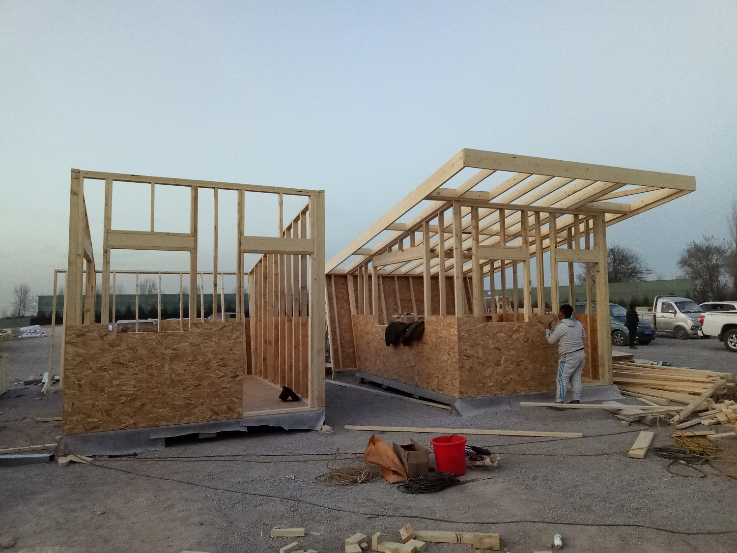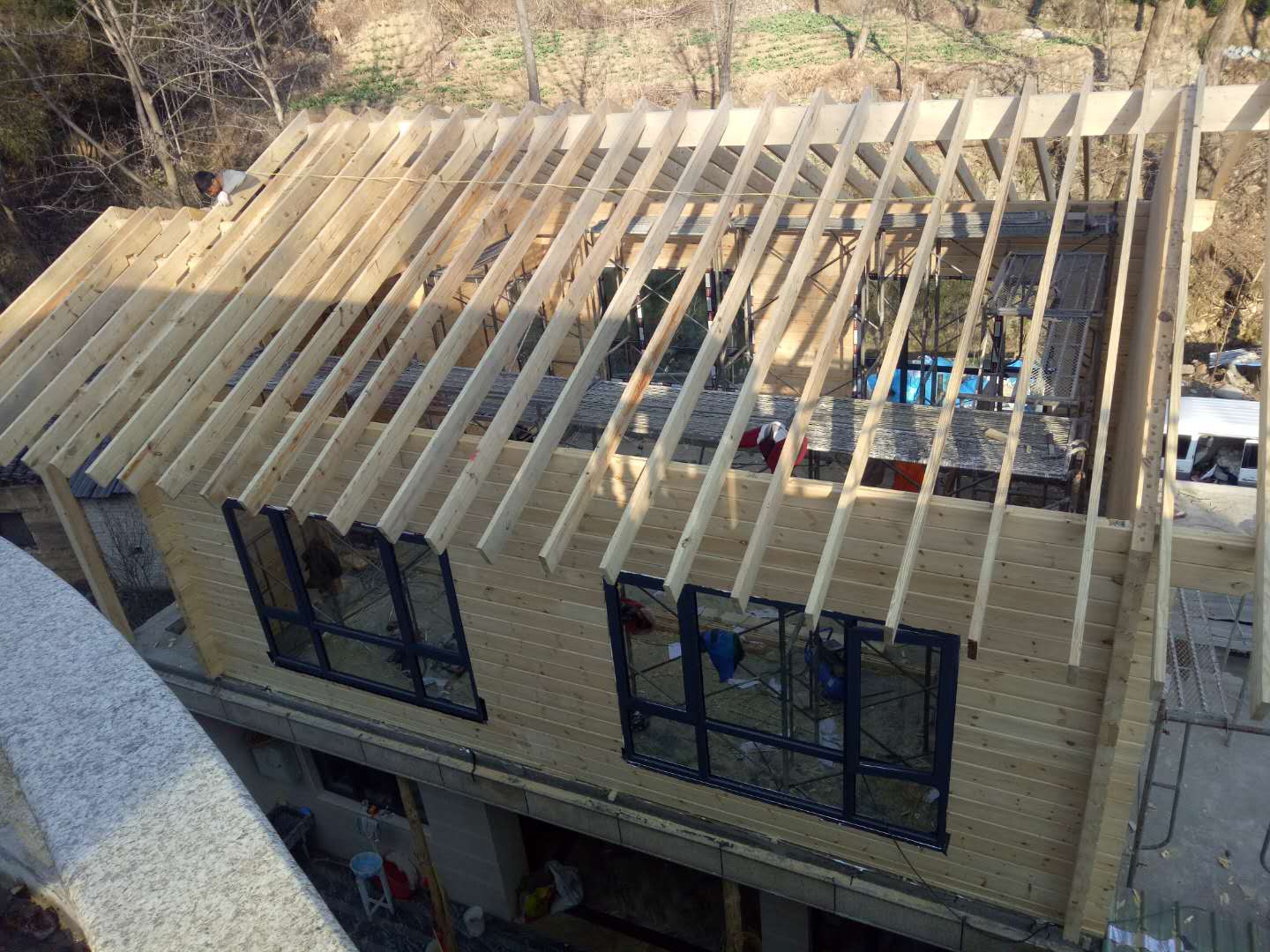 梁柱輕型木結構現在應用比較多,現場組裝快且成本較低,需要的就是工廠精細化加工,把每一條木條都當作積木精度高的加工,現場直接榫卯連接,安裝快且結實耐用。