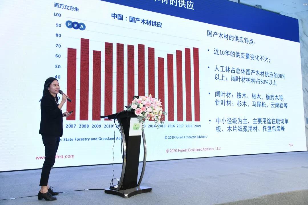 △ 美國林業(yè)經(jīng)濟(jì)顧問公司中國運(yùn)營經(jīng)理郭丹女士發(fā)表主題演講