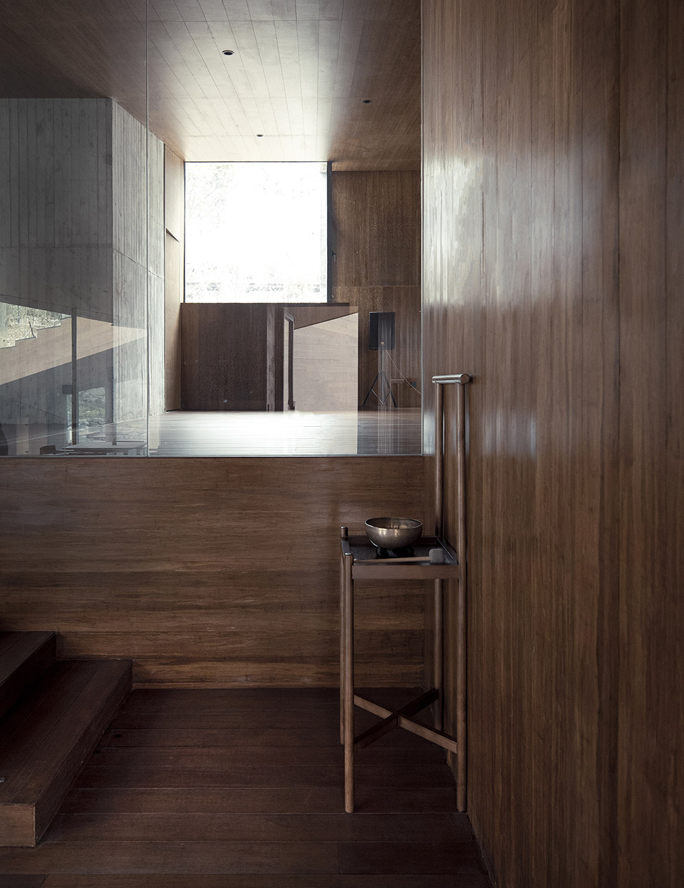 每個(gè)小屋中都保留了一棵場(chǎng)地原生的樹(shù)木,樹(shù)木所占據(jù)的空間成了屋中院,透過(guò)玻璃時(shí)刻于室內(nèi)生活相伴,是自然向建筑的反向滲透,屋中院也為室內(nèi)衛(wèi)生間提供了具有私密性的風(fēng)景。