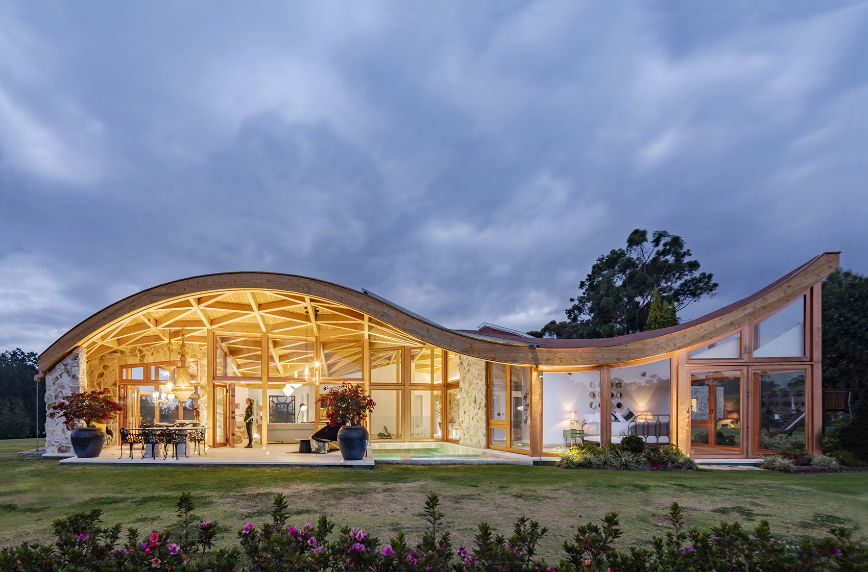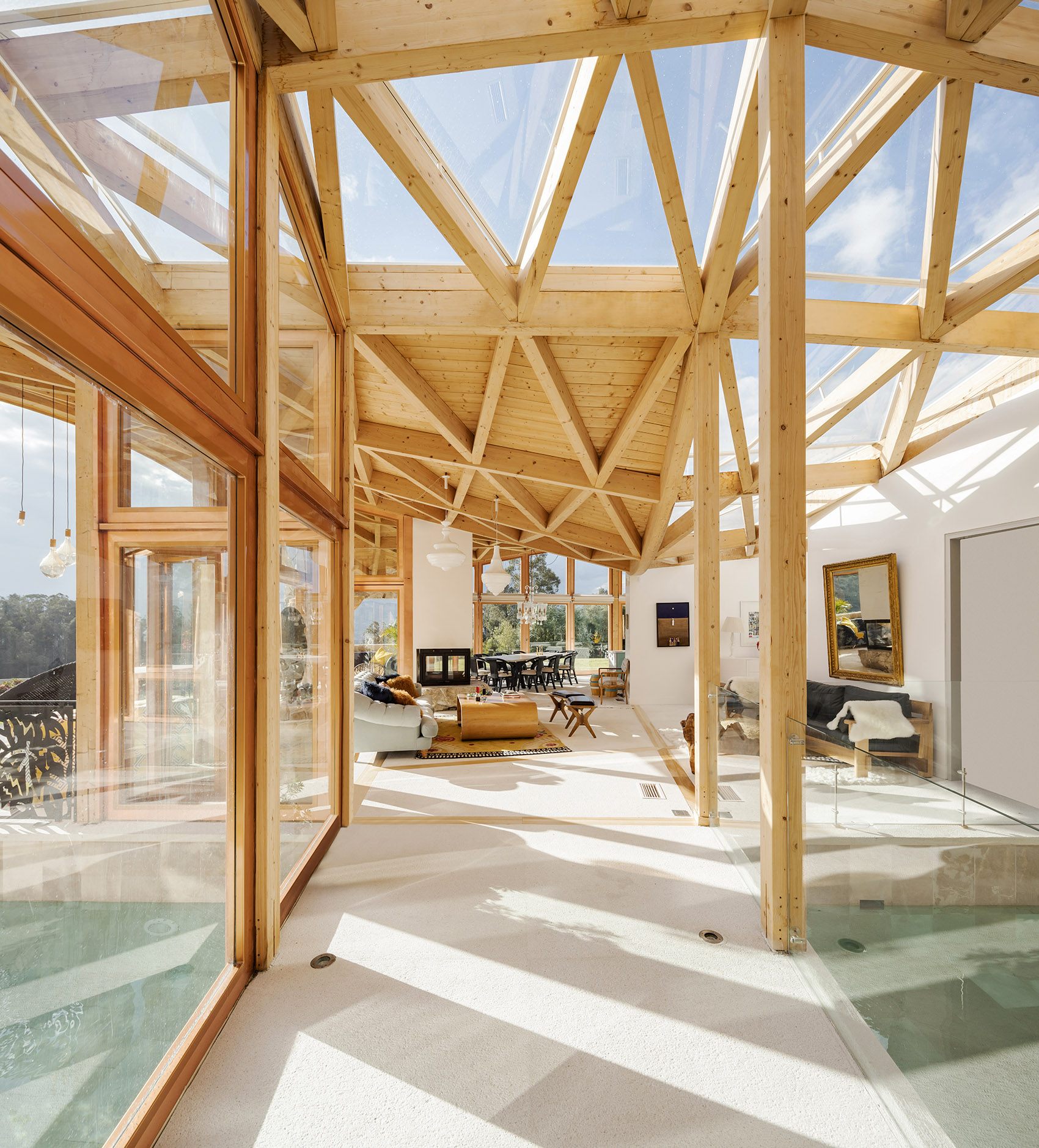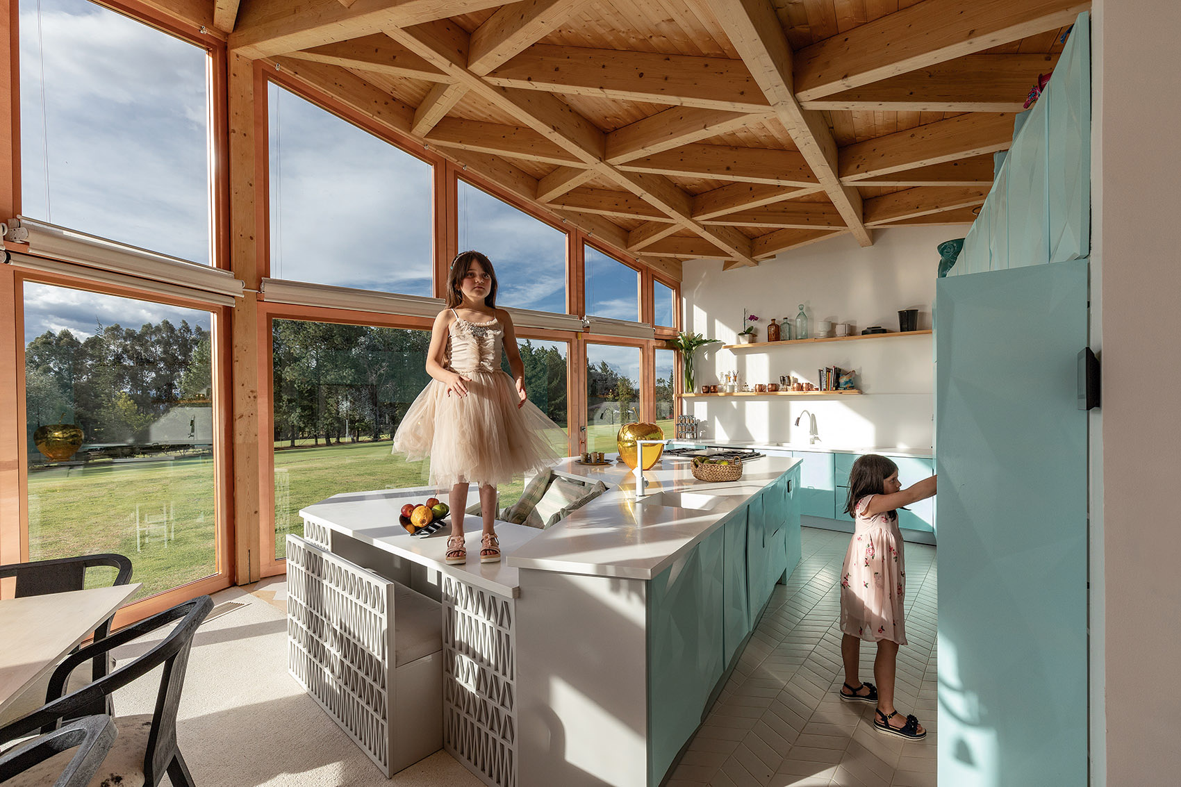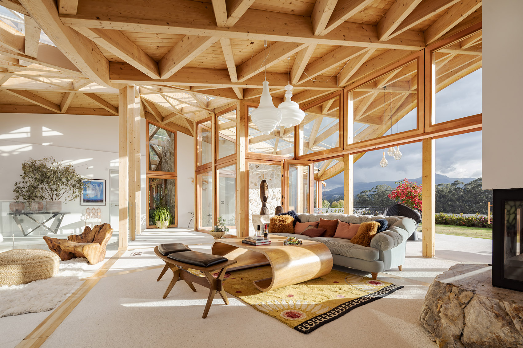 落成后的住宅呈現(xiàn)出石材與玻璃的微妙平衡,充滿活力與溫暖的木結(jié)構(gòu)外觀則將建筑與環(huán)境融為一體。室內(nèi)設(shè)計(jì)遵循了最初的概念,以精致的材料與現(xiàn)代化的設(shè)計(jì),平衡并激活了建筑空間。從利用先進(jìn)的制造工藝處理木材,再到結(jié)合本地和國(guó)際建造經(jīng)驗(yàn),本項(xiàng)目向大眾展示出本地工業(yè)的巨大潛力。這是厄瓜多爾首次實(shí)現(xiàn)該類型的建筑,并達(dá)到如此細(xì)致的水平。將數(shù)字技術(shù)與當(dāng)?shù)氐氖止趧?dòng)技術(shù)相結(jié)合,不僅創(chuàng)造出獨(dú)特的建筑形式,同時(shí)也有助于提升該國(guó)建造業(yè)的潛力與可能性。